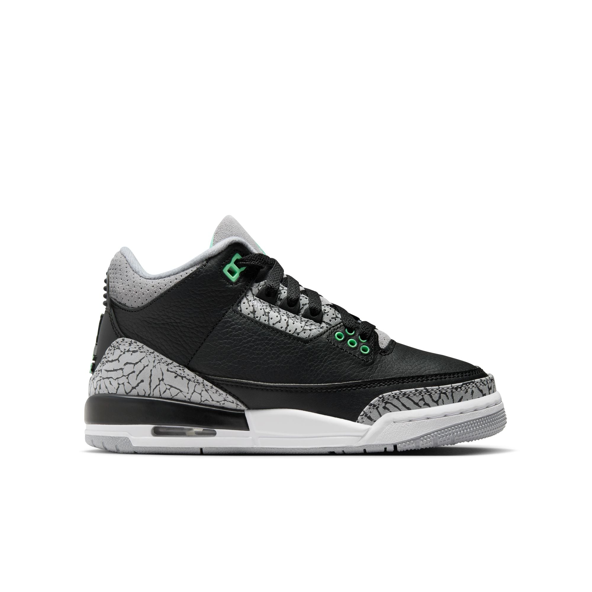 Air Jordan 3 Retro Big Kids' Shoes (GS) 'Black/Green Glow/Grey'